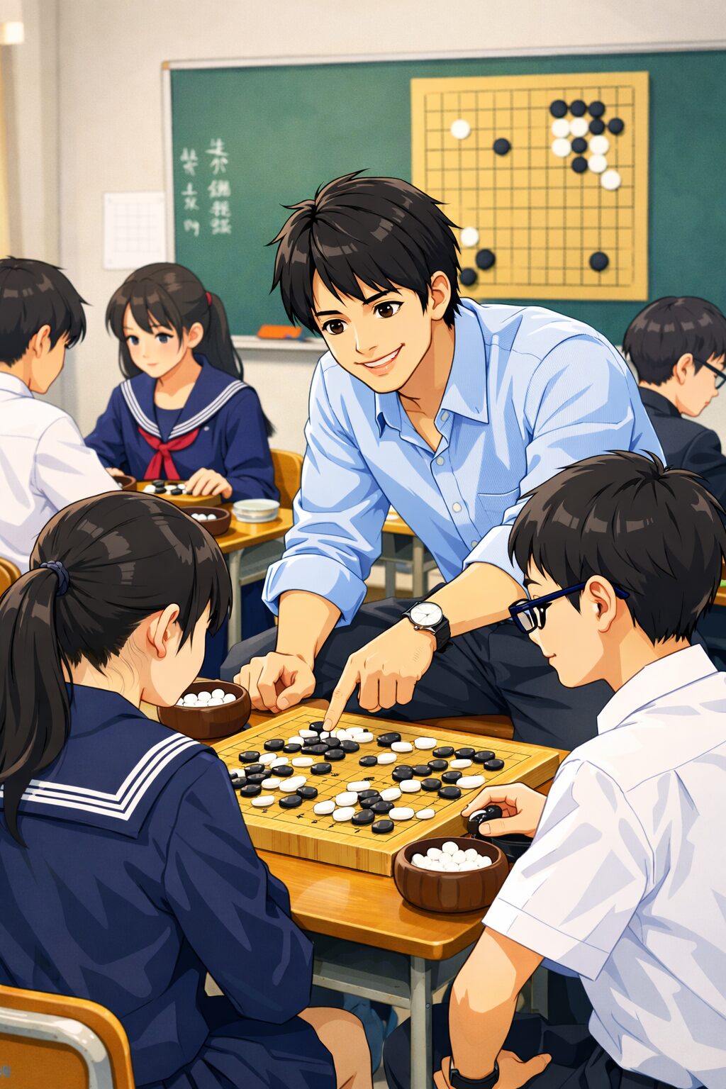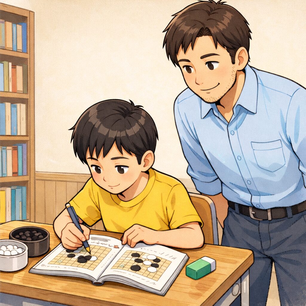 今回も同じような流れで、新しく来た生徒にルール説明から始めていましたが、その日のうちに陣地の作り方や二眼の作り方まで進められそうな雰囲気でした。