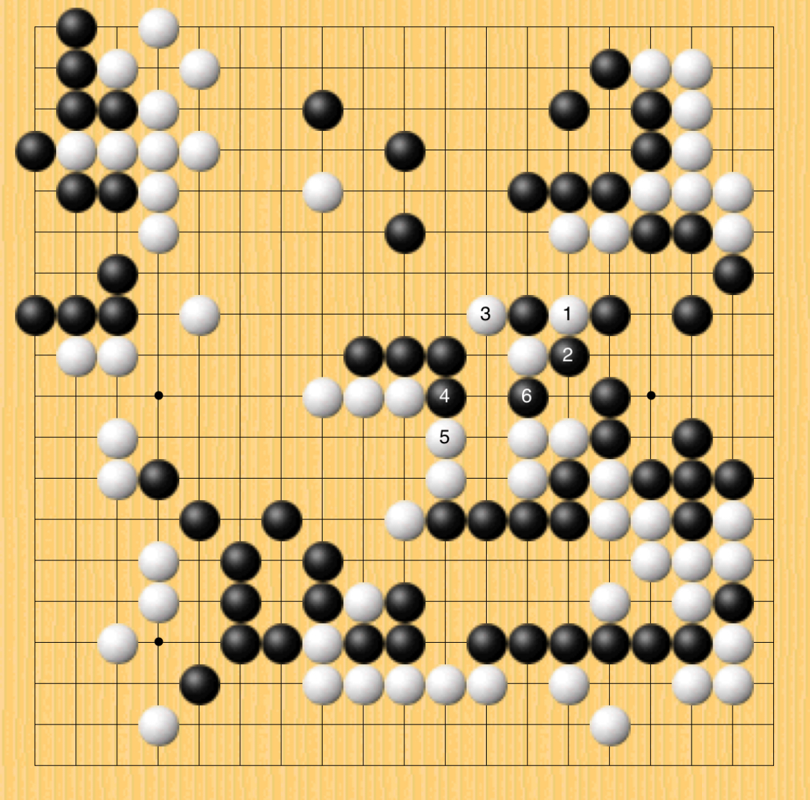 白は1から左の白三子を捨て気味に打つのが勝ちコースだったようです。